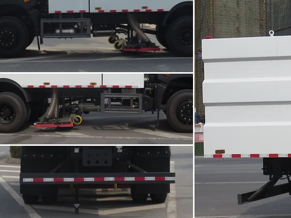 选装侧部扫刷吸盘安装样式,选装后部结构样式,整车长/前悬/轴距/后悬对应(mm)关系为:9100/1250/5600/2250,8800/1250/5100/2450,8400/1250/4700/2450.主要专用装置有箱体,柴油机组,清扫装置等,用途路面清扫,收集垃圾;ABS的型号及生产厂家:3631010-C2000/东科克诺尔商用车制动系统(十堰)有限公司,J ABS/焦作博瑞克控制技术有限公司。侧面防护装置装置采用Q235材质,连接方式为焊接;后下部防护装置采用Q235材质,连接方式为螺栓链接;后下部防护装置断面尺寸(宽赘?(mm):60?60,离地高度:490mm。 |