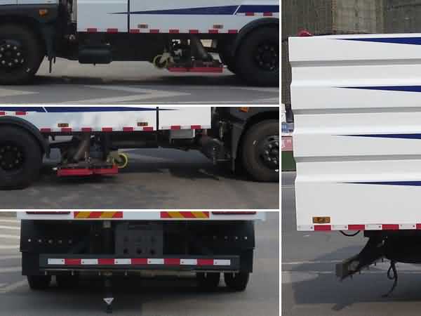 选装侧部扫刷吸盘布置样式,选装后部结构样式,整车长/前悬/轴距/后悬对应(mm)关系为:7520/1250/3800/2470,7760/1250/3950/2560.主要专用装置有箱体,柴油机组,清扫装置等,用途路面清扫,收集垃圾;ABS型号及生产厂家为:3631010-C2000/东科克诺尔商用车制动系统(十堰)有限公司,J ABS/焦作博瑞克控制技术有限公司。侧面防护装置因专用装置干涉无法安装.后下部防护装置采用Q235材质,连接方式为螺栓链接;后下部防护装置断面尺寸(宽赘?(mm):60?20,离地高度:400mm。 |