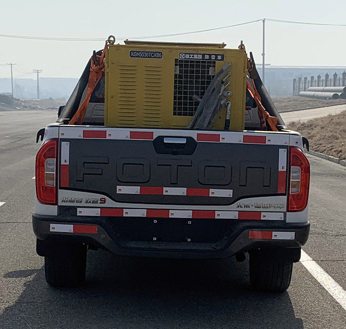 该车可装ABS或ESP.ABS型号/生产企业:ABS9/博世汽车部件(苏州)有限公司.ESP型号/生产企业:ESP9/博世汽车部件(苏州)有限公司;选装描述:随原车选装FOTON(镀亮铬,炫晶灰,镀黑铬)或网格款前格栅,雾灯装饰圈(镀亮铬,镀黑铬,炫晶灰),熏黑或镀铝前组合灯,侧踏板(可不装侧踏板),可不装昼间行车灯,前雾灯.B柱贴膜,侧面车身标识,尾门装饰风格,外置绳钩(可不装),该车前支架用于安装仅在作业时使用的推雪铲,扫雪滚刷.货厢装动力箱,货厢装撒布机时,对应关系分别为:雪铲+前支架+动力箱时:前伸655mm,前悬955mm,后悬1275mm,整车长度为5995mm,整车高度1910mm,整备质量2500kg;滚刷+前支架+动力箱时;前伸1535mm,前悬955mm,后悬1275mm,整车长度为6875mm,整车高度为1910mm,整备质量2560kg;前支架+撒布机时:前悬955mm,后悬1275mm,后伸650mm,整车长度为5990mm,整车高度1870mm,整备质量2350kg;前支架+动力箱时:前悬955mm,后悬1275mm,整车长度为5340mm,整车高度1910mm,整备质量2480kg;专用功能及装置:专用装置为动力装置、雪铲、滚刷、撒布机,用途为清扫路面积雪.该车选装ETC车载装置. |