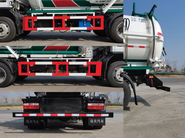 | 随底盘选装前面罩,前保险杠,前组合灯具,前雾灯,选装后上锁紧结构.仅选用3800mm轴距.运输介质:液态污物,介质密度:800千克/立方米,罐体有效容积7.84立方米,罐体尺寸为(罐体长X直径)(mm):4750?600;侧防护及后下部防护装置均采用Q235材质,连接方式均为螺栓连接;后防护截面尺寸(mm):110?0,后部防护离地高度:410mm;ABS型号/厂家:ABS型号:ABS/ASR-24V-4S/4M,厂家:襄阳东风隆诚机械有限责任公司,选装限速装置时最高车速为:89km/h.该车用途为下水道吸污,主要装置为吸污罐及吸污泵. |