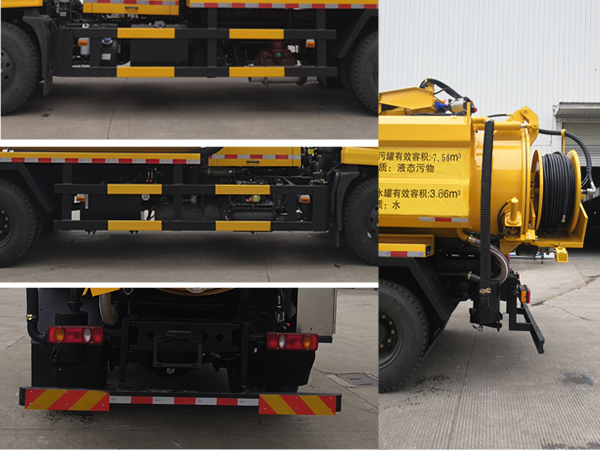 吸污罐罐体外形尺寸(直径字倍纬?(mm):1400?680,吸污罐有效容积4.48立方米,介质为液态污物,密度:800千克/立方米,载质量:3420千克;清水罐截面为2个多边形组成,每个多边形截面积为0.544平方米,长度为3300毫米,清水罐的有效容积为3.06立方米,介质为水,密度是1000千克/立方米,载质量:2920千克;此车载质量6340千克=污水罐载质量+清水罐载质量=3420千克+2920千克。前悬/长的对应关系为(单位:毫米)1430/8165,1400/8135。当驾驶室准乘人数为2人时,额定载质量为6405千克。侧防护与后防护所用材料材质均为Q235A,侧防护与副车架螺栓连接,后防护与大梁焊接固定,后防护断面尺寸为120毫米?0毫米,离地高度为400毫米。仅采用底盘轴距为4500毫米的底盘。装备ABS,ABS型号/生产厂家:3631010-C2000/东科克诺尔商用车制动系统(十堰)有限公司,ABS还可为ABS 8/东科克诺尔商用车制动系统(十堰)有限公司或 4460046450/威伯科汽车控制系统(中国)有限公司或J ABS/焦作博瑞克控制技术有限公司。随底盘选装驾驶室,选装后部灯具。 |