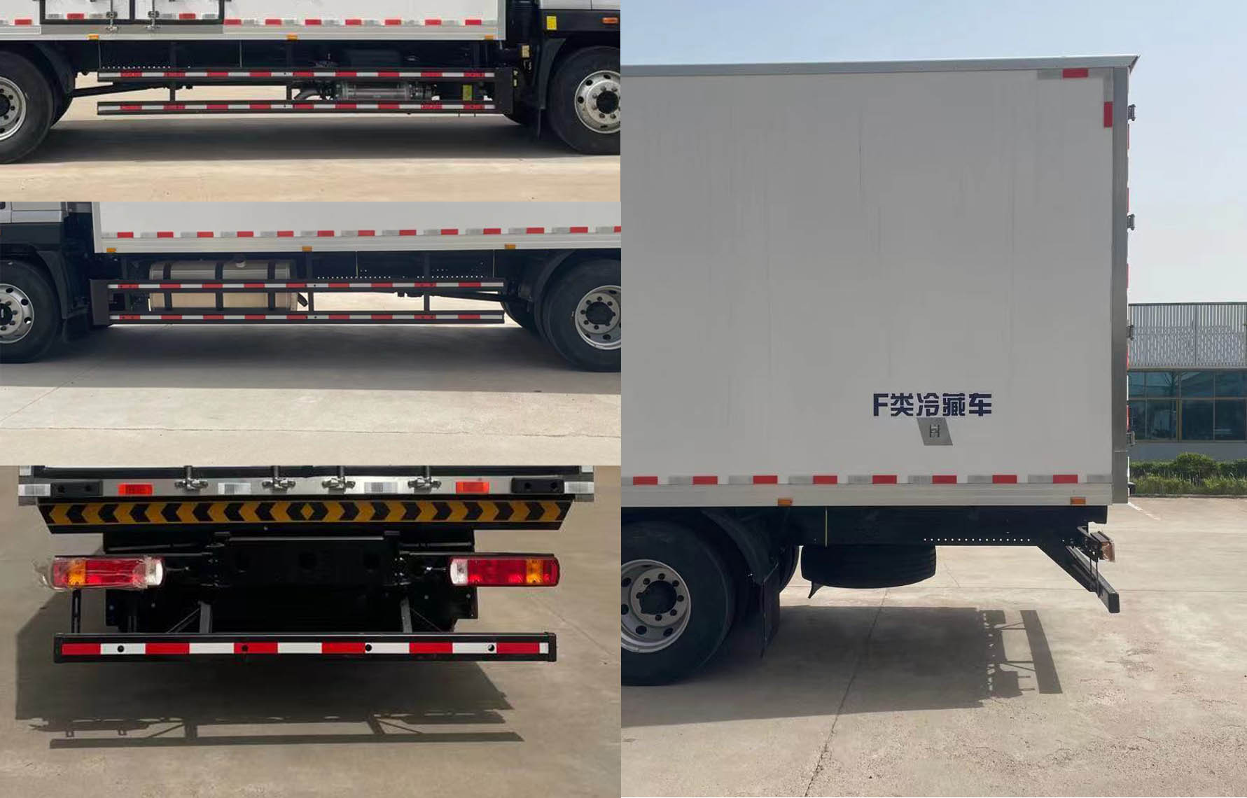 ABS型号:ABS-E,CM4XL-4S/4M,3550D-1010;ABS生产企业:威伯科汽车控制系统(中国)有限公司,广州瑞立科密汽车电子股份有限公司,东科克诺尔商用车制动系统(十堰)有限公司;EBS系统型号/生产企业对应关系:EBS 5/克诺尔制动系统(大连)有限公司.选装限速装置;限速装置限速(km/h):89km/h;配装具有卫星定位功能的行驶记录仪;该车型可选装ETC车载装置;选装前围,选装导流罩,选装高顶驾驶室,选装高顶驾驶室带导流罩,选装同等功率制冷机组,外观形状可不同.选装货厢开门形式.发动机/油耗值(L/100km)对应关系为:F3.8NS6B190,F4.5NS6B220,B6.2NS6B230,CA6DH1-24E6,B6.2NS6B245发动机对应油耗值:23.82L/100km,24.4L/100km,23.6L/100km,23.67L/100km,25.61L/100km;侧后防护情况:侧防护材料材质:Q235.侧防护连接方式:螺栓连接.后防护材料材质:Q235.连接方式:螺栓连接,后部防护装置的断面尺寸:120mm?0mm,离地高度:480mm.;车厢顶部封闭且不可开启;整车长/轴距/前悬/后悬对应关系:10090/5750/1270/3070,9400/5750/1270/3070,9090/5150/1270/2670. |