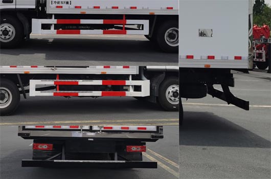 1.整车长/轴距/后悬(mm)对应关系:7445/4200/2115,6995/3800/2065,3800mm轴距时,单排驾驶室对应货箱内部长度5040mm,排半驾驶室对应货箱内部长度4610mm;4200mm轴距时,排半驾驶室对应货箱内部长度5100mm;2.货厢顶部封闭,不可开启;3.ABS系统型号:ABS-E,生产企业:威伯科汽车控制系统(中国)有限公司;ABS-VI.E;生产企业:广州瑞立科密汽车电子股份有限公司;4.发动机F3.8NS6B156,F3.8NS6B170对应的油耗值(L/100km)/最大净功率(kw)分别为17.09/112,17.45/122;5.选装驾驶室,选装无侧开门货厢风格;6.侧防护装置材质:Q235A,螺栓连接;后下部防护装置材料为Q235A ,后部防护装置截面尺寸(高卓?140mm?0mm,螺栓连接,后下防护装置离地高度380mm;7.选装直接供电车载ETC装置. |