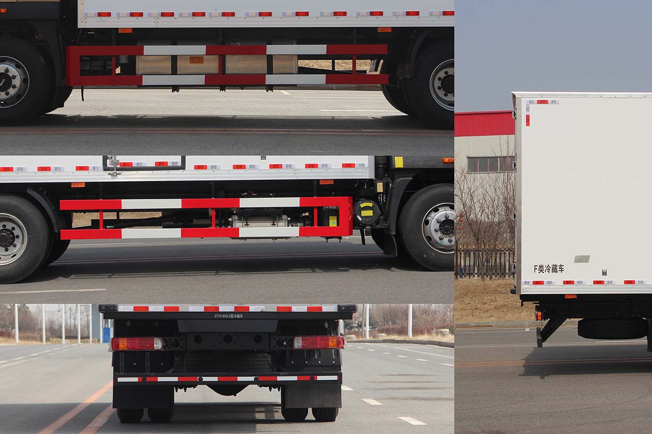 1.货厢顶部封闭,不可开启;2.随底盘选装低顶驾驶室,选装260L或600L油箱,选装ETC车载装置;选装后部工具箱;选装前部维修扶梯;可选装同等功率的制冷机组;可选装取消侧开门,可选装侧面单开门或对开门;可选装后门结构,选装厢内吊挂,底板通风槽装置,外蒙皮选装玻璃钢,彩平板,铝平板;3.ABS生产厂:广州瑞立科密汽车电子股份有限公司,型号:ABS-VI.E;选装ABS生产厂:威伯科(上海)管理有限公司,型号:ABS- E;4.该车装有卫星定位功能的行驶记录仪,装配限速装置,限速90km/h;5.侧后防护材质Q235,后防护横梁断面尺寸(mm):60?20,离地高470mm;侧防护连接方式为螺栓连接,后防护连接方式为螺栓连接及焊接;6.发动机/油耗值(L/100km):F4.5NS6B220/26.28,YCS06245-60A/24.58,YCS04200-68/,YCK05240-60/26.68 |