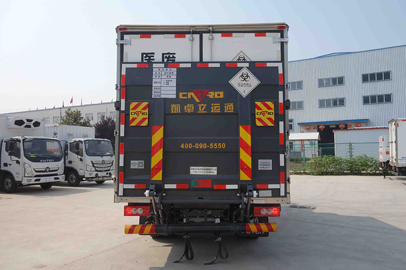 厢体顶部封闭,不可开启.厢体侧开门及位置或不带侧门,选装制冷机组.选装直接供电ETC车载装置。选装液压尾板时:液压尾板水平收起时长度为280mm、质量为350kg、侧防护车辆采用螺栓连接,后防护与液压尾板采用焊接+螺栓连接,后防护为φ120mm圆钢, 离地高度:440 mm.材料均为:Q235。不安装液压尾板时:侧防护车辆采用螺栓连接,后防护车辆采用焊接+螺栓连接,材料均为:Q235,后防护断面尺寸(mm):100?0, 离地高度:440 mm.该车为危险品运输车,用于运输感染性物质,类项号6.2.该车仅采用安装ABS、限速器置,限速80km/h、前轮盘式制动器、排气管前置、具有卫星定位功能的行驶记录仪、配装子午线轮胎、转向轮安装轮胎爆胎应急防护装置底盘.ABS系统型号:ABS-VI.E;生产企业:广州瑞立科密汽车电子股份有限公司.ABS系统型号:ABS-E;生产企业:威伯科汽车控制系统(中国)有限公司..仅采用F2.8NS6B156型,Q28-130E60型,F2.8NS6B131型发动机油耗值分别为:11.07L/100km,11.02L/100km,10.85L/100km. |