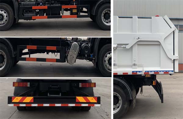 本产品顶部封闭,不可开启,选用轴距4500mm;用途:垃圾运输,专用装置:液压油缸,液压马达;侧后防护装置材料材质为Q235,侧防护装置采用螺栓连接,后下部防护装置与车架采用螺栓连接,后防护装置的断面尺寸为250?0mm,离地高度为490mm;ABS型号/生产厂家:3631010-C2000/东科克诺尔商用车制动系统(十堰)有限公司,ABS 8/东科克诺尔商用车制动系统(十堰)有限公司,4460046450/威伯科汽车控制系统(中国)有限公司;该车安装具有卫星定位功能的行驶记录仪.选用D4.5NS6B190发动机时油耗值为24.4L/100km,选用D6.7NS6B230发动机时油耗值为23.7L/100km,选用DDi50E190-60发动机时油耗值为23.9L/100km,选用B6.2NS6B210发动机时油耗值为23.8L/100km,选用B6.2NS6B230发动机时油耗值为23.8L/100km.选装驾驶室,选装外形侧面样式和后部样式. |