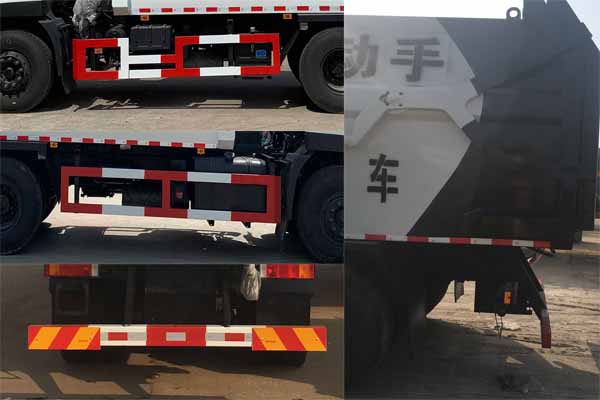 该车主要用于实现压缩垃圾站的压缩块状垃圾的对接装载和转运卸料功能;车厢顶部封闭,不可开启;前悬(mm)/)/轴距(mm)/整车长(mm)对应关系为:1480/4350+1350/9440,1500/4350+1350/9460;侧防护采用Q235材质螺栓连接在大梁上,后防护采用Q235材质焊接在大梁上,后防护断面尺寸(mm):140?0,离地高度(mm):450;整备质量为13200kg时,对应额定载质量为11605kg,11670kg,整备质量为13600kg时,对应额定载质量为11205kg,11270kg;随底盘选装驾驶室;ABS型号/生产厂家:3631010-C2000/东科克诺尔商用车制动系统(十堰)有限公司,ABS 8/东科克诺尔商用车制动系统(十堰)有限公司,4460046450/威伯科汽车控制系统(中国)有限公司;发动机对应油耗值(L/100km)为:D6.7NS6B290(31.3),DDi75E350-60(31.7),DDi75E350-60(31.7).选装不同箱体外观. |