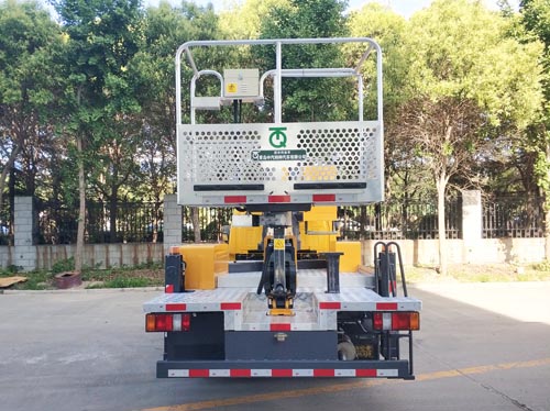 | 该车后伸320mm;专用装置:臂架、转台、工作平台,用于举升运送专业人员进行高空作业和市政抢修;侧防护装置材料6063铝合金,连接方式:螺栓连接;后防护装置材料Q235,截面尺寸120mmx30mm,离地高度440mm,连接方式:与纵梁后部螺栓连接;ABS系统型号:APG3550500A,ABS系统生产厂家:浙江亚太机电股份有限公司.选装作业上装外观,选装工作平台样式.随底盘选装驾驶室,选装黑色轮辋,选装门框黑色贴膜,随底盘选装后部灯具.选装采用直接供电的ETC车载装置. |