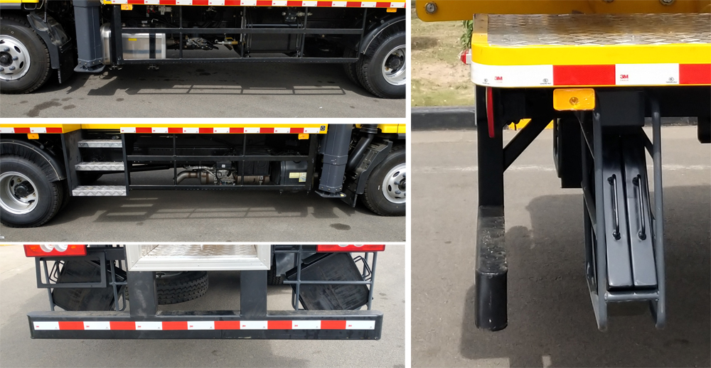 | 仅选用4200mm轴距,后伸360mm.ABS系统型号:ABS-E;生产企业:威伯科汽车控制系统(中国)有限公司.ABS系统型号:ABS-V I.E;生产企业:广州瑞立科密汽车电子股份有限公司.防护材料均为Q235A,侧防护连接方式为螺栓连接,后防护截面高150mm,截面宽80mm,离地高430mm,后防护连接方式为焊接连接.该车专用装置为高空作业装置,可广泛应用于市政、园林、路灯、电力、交通等需要高空作业的领域.选装作业斗样式.选装转台驾驶室样式.选装备胎位置,选装散热器.选装电器盒.选装臂尾罩,选装后部电器盒. |