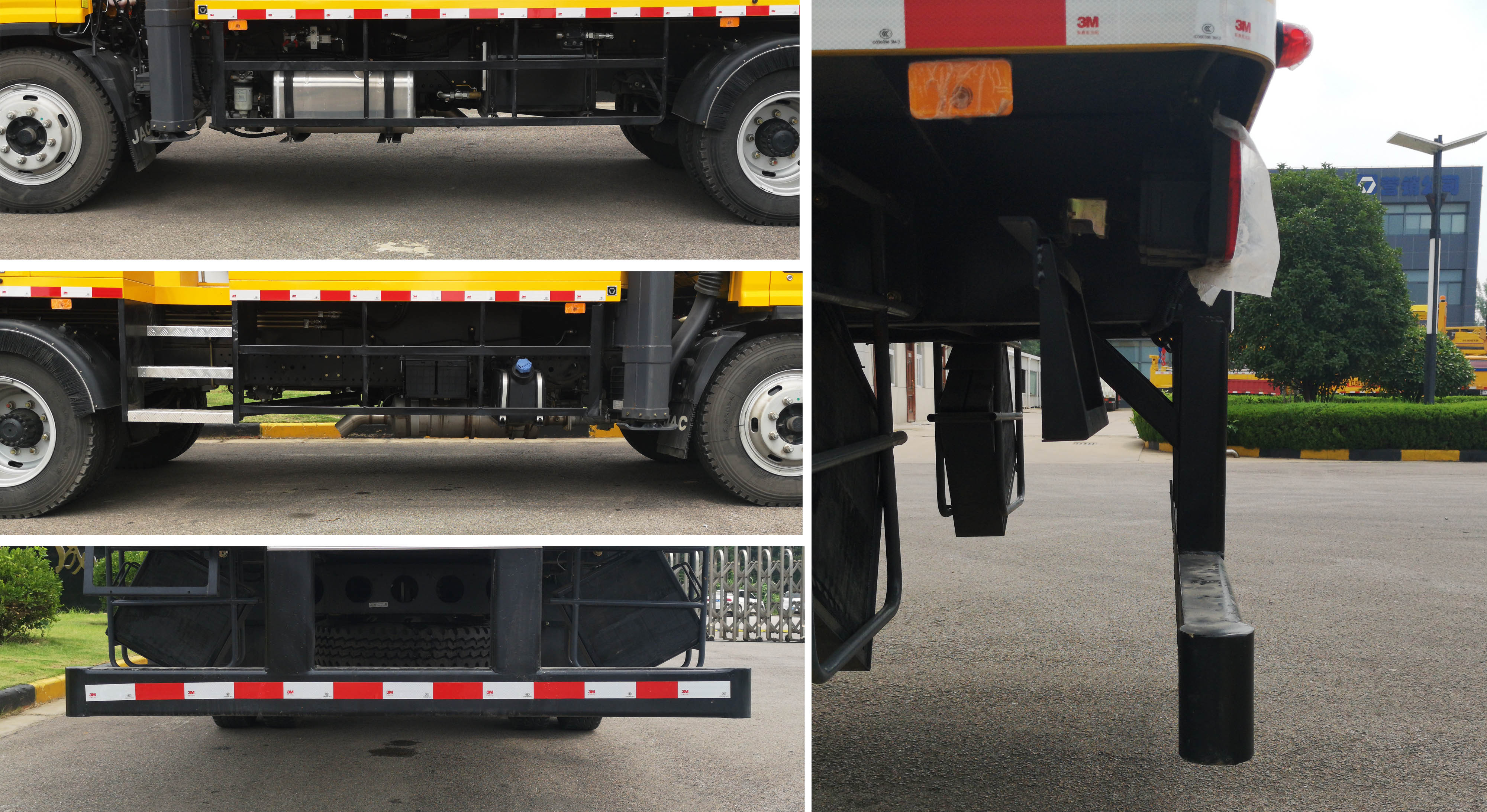 | 后防材料为Q235A,连接方式为焊接连接,截面宽80mm.截面高150mm,离地高450mm;侧防护材料Q235A,连接方式为螺栓连接.ABS控制器型号/厂家:ABS 8/克诺尔商用车系统企业管理(上海)有限公司;专用装置为高空作业装置,主要用于电力、市政、园林、路灯、交通等需高空作业的领域,选装作业斗样式.选装转台驾驶室样式.选装臂尾罩,选装电器盒. |