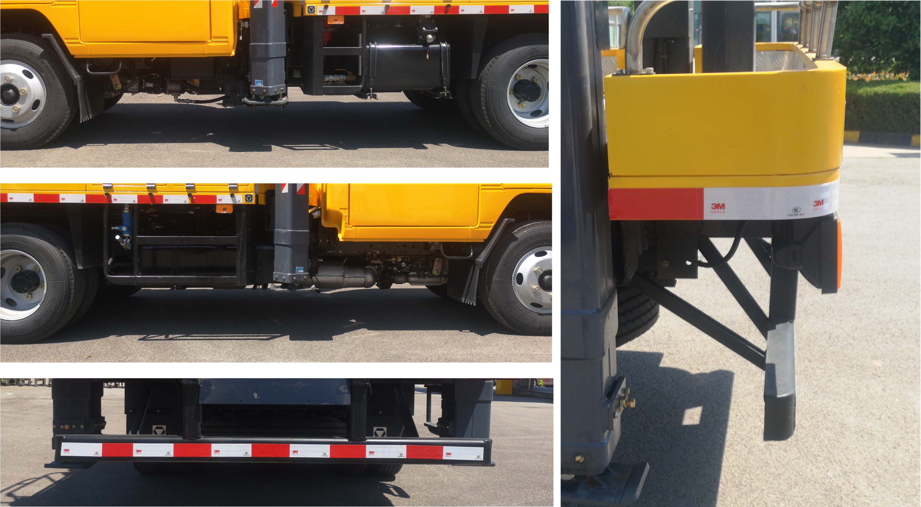| 后伸:125mm,侧防护装置为金属护栏,材质Q235A,连接方式为螺栓连接.后防护材质Q235A,连接方式焊接连接,截面宽60mm,截面高100mm,离地高390mm.ABS系统型号:APG3550500A,ABS系统生产厂家:浙江亚太机电股份有限公司.该车专用装置为高空作业装置,可广泛应用于市政、园林、路灯、电力等高空作业领域.随底盘选装驾驶室形式.选装作业斗样式.选装电瓶样式.选装护轮板样式.随底盘选装后部组合灯具. |