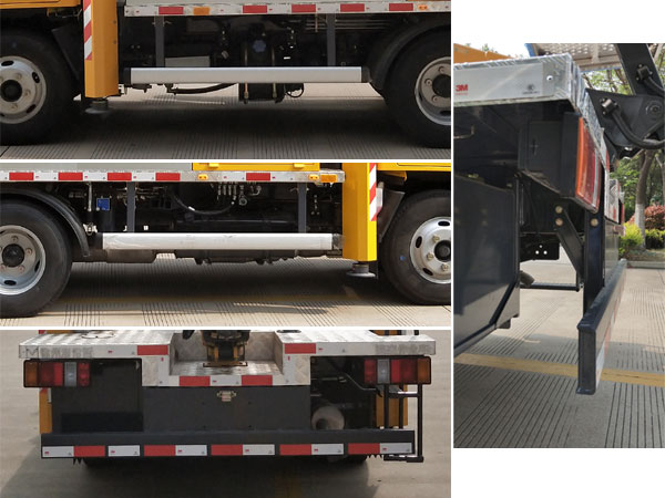 | 后伸320mm。随底盘选装门框黑色贴膜、尾部灯具。选装工作平台样式。选装固定支腿样式。该车型装备有支腿,转台,臂架,工作平台等部件的高空作业装置,可将作业人员与工具送到指定高度位置进行作业。ABS系统型号:APG3550500A,ABS系统生产厂家:浙江亚太机电股份有限公司。侧防护材质为6063铝,连接方式为螺栓连接;后下部防护材质为Q235钢,连接方式为螺栓连接,断面尺寸为120mm?0mm,下缘离地高度400mm。 |