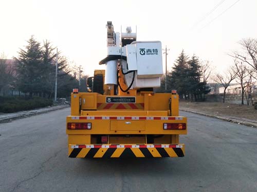 | 该车仅采用4500mm轴距底盘.专用装置:臂架、绝缘臂、工作平台,用于举升运送专业人员进行高空带电作业和市政抢修.侧面工具箱起到防护装置作用;后防护装置材料:Q235,连接方式:螺栓连接,后部防护装置截面尺寸260mm?0mm,离地高度390mm.随底盘安装ABS,ABS系统型号为4460046300(EBS3),生产企业为威伯科(上海)管理有限公司.支撑装置选装A型支腿和H型支腿.选装矮立柱,选装矮立柱对应整车高度为3700mm.选装后平台结构样式. |