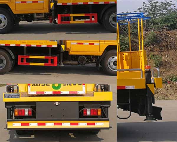 | 选装臂架结构,随底盘选装驾驶室;该车前伸200mm;侧防护材料Q235B,螺栓连接;后防护材料Q235B,焊接连接,后防护截面高度尺寸200mm,截面宽度尺寸50mm,下边缘离地高度360mm;ABS系统型号:APG3550500A,ABS系统生产厂家:浙江亚太机电股份有限公司;该车主要用于抢修电力,通讯,路灯等高空作业,专用装置为升降平台和作业臂. |