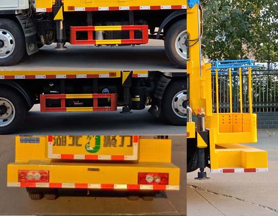随底盘选装前围,前格栅,前部LOGO,选装驾驶室;该车前伸200mm;侧防护材料Q235B,螺栓连接;后防护由车身部件代替,与车架焊接连接,材料Q235,下边缘离地高度460mm; ABS系统控制方式为4S/4M,ABS型号为CM4XL-4S/4M,生产厂家为广州瑞立科密汽车电子股份有限公司;该车主要用于抢修电力,通讯,路灯等高空作业,专用装置为升降平台和作业臂. |