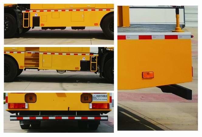 1,该车主要专用装置为举升装置,工作斗,主要用于电力安装,维修等高空作业;2,侧防护装置为裙板式结构,与副车架焊接连接,材质为Q235A钢板,离地高度520mm;3,后下防护装置采用Q235A横杆构成,与底盘螺栓连接,断面尺寸:120mm?0mm,离地高度460mm;4, 整车长/前悬/轴距/后悬/前伸/后伸对应关系为(mm) 8780/1400/4500/2410/140/330;5,随底盘选装驾驶室外观;6,该车仅选用4500轴距;7,该车安装ABS, ABS型号/生产厂家:3631010-C2000/东科克诺尔商用车制动系统(十堰)有限公司,ABS 8/东科克诺尔商用车制动系统(十堰)有限公司, 4460046450/威伯科汽车控制系统(中国)有限公司;D6.7NS6B230,B6.2NS6B210,B6.2NS6B230,DDi50E190-60,D4.5NS6B190发动机最大净功率分别为166kW,151kW,166kW,143kW,135kW;8,工作斗选装双斗外观; |