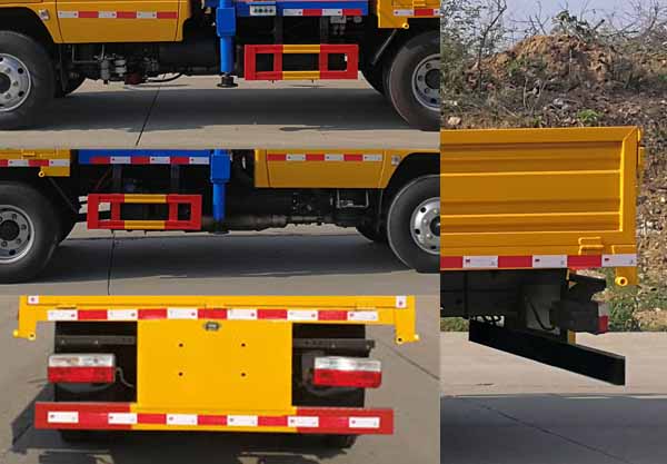 随底盘选装驾驶室;侧防护材料Q235B,螺栓连接;后防护材料Q235,焊接连接,后下部防护装置断面尺寸(宽赘?:30?20(mm),离地高度:400mm;ABS型号/厂家:ABS/ASR-24V-4S/4M/襄阳东风隆诚机械有限责任公司;该车主要装置为升降平台,用途为抢修电力,通讯,路灯等高空作业. |
