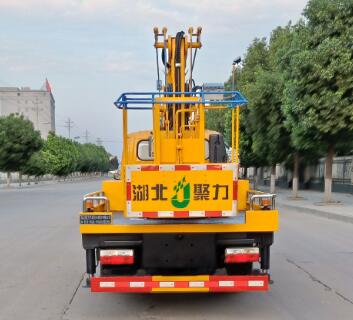 随底盘选装驾驶室;选装臂架结构;该车前伸800mm,后伸302mm;侧防护材料Q235B,螺栓连接;后防护材料Q235,焊接连接,后防护截面高度尺寸150mm,截面宽度尺寸30mm,下边缘离地高度360mm;ABS型号/厂家:ABS/ASR-12V-4S/4M/襄阳东风隆诚机械有限责任公司;该车主要用于抢修电力,通讯,路灯等高空作业,专用装置为升降平台和作业臂. |