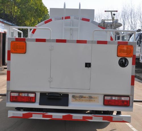 选用3308mm轴距底盘.1随底盘选装驾驶室.2加装前排冲及点冲装置时整车长5990mm,前伸360mm.选装不带前排冲及点冲装置时整车长5630mm.3选装不带箭头灯.4该车专用装置为副发动机,自动卷盘,前排冲及点冲装置,手持喷枪.用于城市道路,非机动车道,人行道,护栏,路牙等清洗养护作业.侧防护和后防护的材料均采用Q235-A,侧防护与后下部防护均与车辆螺栓连接固定.后下部防护装置断面为矩管,断面尺寸为100mm?0mm;离地高度为370mm.ABS型号/厂家:ABS/ASR-12V-4S/4M/襄阳东风隆诚机械有限责任公司.各发动机净功率(kW)值如下:D20TCIF1:88,YCY24140-60:99,CA4DB1-11E6:79,ZD30D16-6N:115,CY4BK461:92,CY4BK161:102 |
