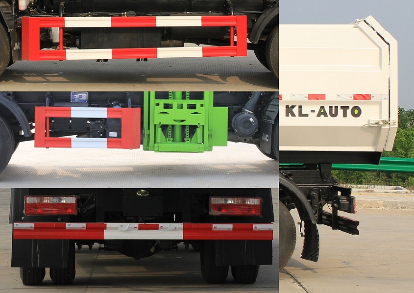 1.专用装置:垃圾箱和提升机构,主要用于垃圾的装载和运输;2.侧防护材料采用Q235B,连接方式为螺栓连接,后部防护材料采用Q235B,连接方式为焊接,下边缘离地高:400mm,断面尺寸(宽赘?50?20(mm);3.发动机型号/油耗(L/100km)对应关系:Q23-115E60/11.39;4.发动机净功率(KW)值如下:Q23-115E60:82;5.ABS型号厂家为CM4XL-4S/4M/广州瑞立科密汽车电子股份有限公司,选装ABS系统型号/厂家:VIE ABS-Ⅱ/浙江万安科技股份有限公司;6.仅采用3365mm轴距改装,车辆总长/前悬/后悬对应关系:5965/1075/1525,5990/1100/1525,5725/1075/1285,5750/1100/1285,5425/1075/985,5450/1100/985;7.选装直接供电式ETC;8随底盘选装驾驶室,选装底盘附件安装位置. |