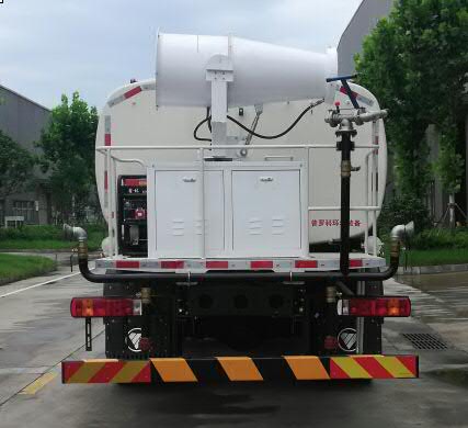 该车装有水罐,水路系统,雾炮系统,作业平台,控制系统,用于绿化浇灌、洒水、清洗等作业;罐体外形尺寸(长轴锥讨嶙长度)(mm):2410?460?000.罐体有效容积11.0立方米;.侧防护及后防护材料均为Q235A,连接方式为螺栓联接,后防护栏断面尺寸为150?0mm,离地高度为450mm;整车长度7860mm时,后伸60mm;选装前自动水炮时整车长度8460mm,前伸600mm,后伸60mm;选装前鸭嘴时,整车长度8080mm,前伸220mm,后伸60mm;选装前对冲时,整车长度8280mm,前伸420mm,后伸60mm;ABS控制器型号为CM4XL-4S/4M,ABS控制器生产企业为广州瑞立科密汽车电子股份有限公司.选前自动水炮,选装罐体左右两侧不带工具箱,选装鸭嘴,前对冲,中置对冲,上车踏板(左右均可),后指示灯,上下喷雾,选装后置卷盘,预留加水口,选装带自吸(左右均可),可选装ETC车载装置.选装罐体封头造型,随底盘选装前围. |