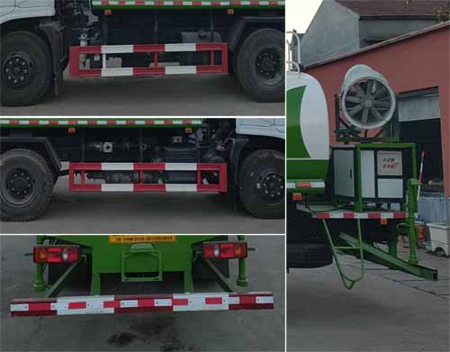 该车用于园林绿化,主要专用装置为罐体.仅采用3950,4500轴距(mm),随底盘选装驾驶室,选装雾炮和不带雾炮样式.外形长/轴距/前悬/后悬对应关系为 (mm):8240/4500/1440/2300,8240/4500/1200/2540,8240/4500/1300/2440,7890/3950/1440/2500,7690/3950/1440/2300,7690/3950/1200/2540,7690/3950/1300/2440.罐体有效容积:10.08立方米,罐体外形尺寸(长壮ぶ嶙短轴)(mm):4200?350?450.侧、后防护装置材料材质均为Q235;连接方式:左右侧面及后下部防护均采用焊接连接,后部防护装置断面尺寸(宽赘?50?20(mm),后部防护离地高度:480mm.ABS型号:3631010-C2000,ABS-E 4S/4M;ABS生产企业:东科克诺尔商用车制动系统(十堰)有限公司,威伯科汽车控制系统(中国)有限公司. |