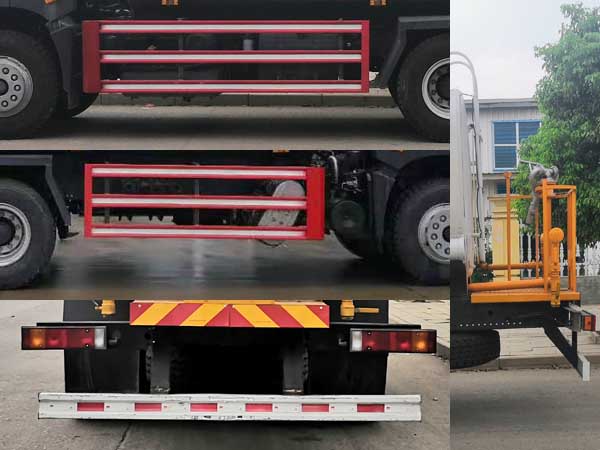 随底盘选装驾驶室,随底盘选装电瓶,尿素罐,储气筒左右安装位置.选装进出水口安装位置.选装后高位花洒,选装方圆管道箱,选装后雾炮装置,选装后弧形喷雾.选装LED箭头指示灯,选装后平台式样,选装喷枪安装位置.装备有泵和喷洒系统,用于园林绿化喷洒作业.罐体有效容积:15.75立方米,罐体外形尺寸(长壮ぶ嶙短轴)(mm):6500?400?460.侧后防护采用Q235材质焊接连接,后部防护断面尺寸(mm):50?20,后部防护离地高度(mm):500.ABS型号及生产厂家为:3631010-C2000/东科克诺尔商用车制动系统(十堰)有限公司,J ABS/焦作博瑞克控制技术有限公司. |