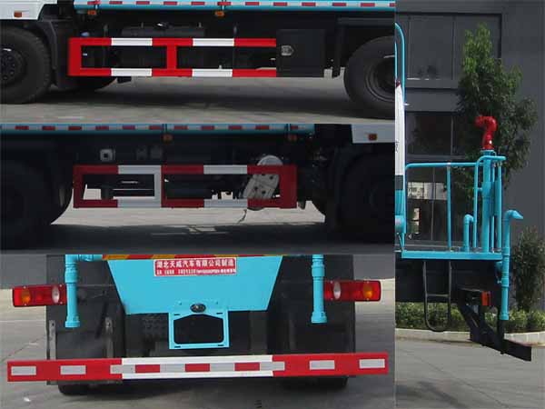 ABS型号:3631010-C2000;VIE ABS-Ⅱ;ABS生产企业:东科克诺尔商用车制动系统(十堰)有限公司;浙江万安科技股份有限公司;选装描述:随底盘选装驾驶室,选装后部喷洒装置;所用材料材质、连接方式以及后部防护装置的主要尺寸参数(断面尺寸和离地高度):侧、后防护材质均为Q235,连接方式:左右侧面及后下部防护均采用焊接连接,后部防护装置断面尺寸(宽赘?50?20(mm),后部防护离地高度:480mm;罐体有效容积(立方米)、罐体外形尺寸(mm):罐体有效容积: 15.7立方米.罐体外形尺寸(长壮ぶ嶙短轴)(mm)为:6600?350?490,6100?390?580.仅选用4350+1350轴距;专用功能及装置:该车主要用于城乡园林绿化、喷洒等;主要装置为水罐;其他说明: 仅采用B6.2NS6B230,B6.2NS6B260,YCS06245-60,YCS06270-60,WP7.300E61,DDi75E300-60,WP8.320E61发动机.; |
