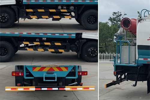 该车用于喷洒路面,起除尘和降温作用的罐式专用作业汽车;罐体有效容积:10.6立方米,运输介质:丙酮水溶液,密度:950千克/立方米;罐体外形尺寸(长卓碜高)(mm)为:4200?340?540;整车长(mm)/后悬(mm)的对应关系为7900/2520,7650/2270;仅采用3950mm轴距的底盘;随底盘选装驾驶室,安装带有卫星定位功能的行驶记录仪;侧防,后防采用Q235材质螺栓连接在大梁上,后防护截面尺寸(mm):140?0,离地高度(mm):450;ABS型号/生产厂家:3631010-C2000/东科克诺尔商用车制动系统(十堰)有限公司,ABS 8/东科克诺尔商用车制动系统(十堰)有限公司,4460046450/威伯科汽车控制系统(中国)有限公司;选装后下部及后上部喷雾装置,选装箭头灯,选装洒水装置位置、前冲样式以及不带花洒样式,选装不同罐体外观及罐体两侧管道箱外观. |