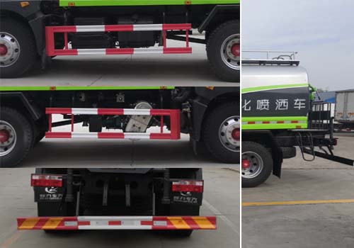 1. 该车选用4500mm和3950mm轴距;2、罐体有效容积:11.30立方米,整车尺寸长度:8580mm对应轴距4500mm时,罐体尺寸(罐体长壮ぶ嶙短轴)mm:4800?150?570,整车尺寸长度:7770mm对应轴距3950mm时,罐体尺寸(罐体长壮ぶ嶙短轴)mm:4300?350?650,。3、侧防护及后下部防护装置均采用Q235B材质,侧防护采用螺栓连接,后下部防护采用焊接,后下部防护尺寸:150?0(mm),离地面高度480mm。4,ABS系统生产厂家,型号 :焦作博瑞克控制技术有限公司,J ABS。5、专用装置:罐体,主要用于洒水及园林绿化。6、该车可选装A、后部带弧形喷雾和LED箭头指示灯;B、后部带LED箭头指示灯;C、后部带弧形喷雾装置;D.选装带喷雾机组. |