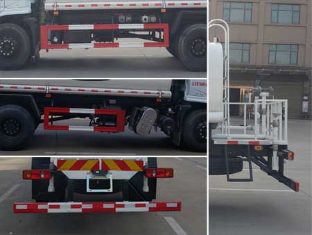1、专用装置:罐体及水泵,主要用于路面洒水及园林绿化。该车仅选用4500mm和4700mm轴距底盘。介质为丙酮水溶液,密度950千克/立方米.罐体有效容积11.88立方米。罐体外形尺寸(长壮ぶ嶙短轴)(mm)对应关系为: 5000?300?500。整车长(mm)/前悬(mm)/轴距(mm)/后悬(mm)对应关系为:8350/1440/4500/2410,8350/1440/4700/2210,8850/1440/4500/2910,8850/1440/4700/2710。 2、侧,后防护装置材料均为Q235,侧防护螺栓连接,后防护焊接,截面尺寸为120?0mm,离地高度为480mm。3、选装驾驶室前保险杠,前部灯具及前围面板造型,选装驾驶室侧面局部造型,驾驶室遮阳板为选装件可不安装,选装后部喷洒装置。安装具有卫星定位功能的行驶记录仪,ABS型号/生产厂家:3631010-C2000/东科克诺尔商用车制动系统(十堰)有限公司,ABS-E 4S/4M/生产厂为威伯科汽车控制系统(中国)有限公司。 |