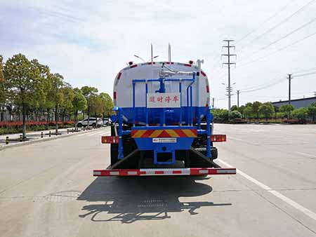 该车用于园林绿化,起除尘和降温作用的罐式专用作业汽车;罐体有效容积:11.9立方米,运输介质:丙酮水溶液,密度:950千克/立方米;当选装水炮时罐体外形尺寸(长卓碜高)(mm)为:5000?300?550,当选装风机时罐体外形尺寸(长卓碜高)(mm)为:4500?300?550;当选装水炮时整车长(mm)/前悬(mm)/轴距(mm)/后悬(mm)对应关系为:8430/1430/4700/2300,8400/1400/4700/2300;8430/1430/4500/2500,8400/1400/4500/2500;当选装风机时整车高度(mm)为3500,整车长(mm)/前悬(mm)/轴距(mm)/后悬(mm)对应关系为:8530/1430/4700/2400,8500/1400/4700/2400,8530/1430/4500/2600,8500/1400/4500/2600;随底盘选装驾驶室;侧防,后防采用Q235材质螺栓连接在大梁上,后防护截面尺寸(mm):140?0,离地高度(mm):450;ABS型号:ABS 8,4460046450,3631010-C2000,生产厂家:东科克诺尔商用车制动系统(十堰)有限公司,威伯科汽车控制系统(中国)有限公司,东科克诺尔商用车制动系统(十堰)有限公司;在不影响专用性能情况下选装前冲样式和花洒等洒水装置,选装不同外观. |