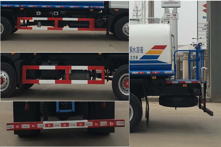 该车用于园林绿化,起除尘和降温作用的罐式专用作业汽车;罐体有效容积:11.92立方米,运输介质:丙酮水溶液,密度:950千克/立方米;整车长(mm)/轴距(mm)/前悬(mm)/后悬(mm)/罐体外形尺寸(长卓碜高)(mm)的对应关系为7500/3950/1260/2290/4300?460?680,8300/4500/1260/2540/5100?300?520,8300/4700/1260/2340/5100?300?520;侧防,后防采用Q235材质螺栓连接在大梁上,截面尺寸(mm):120?0,后部防护离地高度(mm):450;随底盘选装驾驶室;ABS系统生产厂家,型号 :焦作博瑞克控制技术有限公司,J ABS;在不影响专用性能情况下选装前冲和不带花洒样式等洒水装置及后部工作平台样式,选装不同外观。 |
