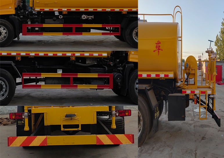 该车用于园林绿化,主要专用装置为罐体及喷洒系统.随底盘选装驾驶室;选装后部喷雾装置型式.运送介质品名:水;介质密度:1000千克/立方米,罐体有效容积10.9立方米.该车仅选轴距4500mm和4700mm,罐体尺寸为(长壮ぶ嶙短轴)(mm):5000?200?450.ABS系统型号/生产厂家:3631010-C2000/东科克诺尔商用车制动系统(十堰)有限公司,ABS 8/东科克诺尔商用车制动系统(十堰)有限公司,4460046450/威伯科汽车控制系统(中国)有限公司.防护:侧后防护材料均采用Q235,与车辆连接方式为焊接.后防:离地高度为450mm,断面为120mmX50mm. |