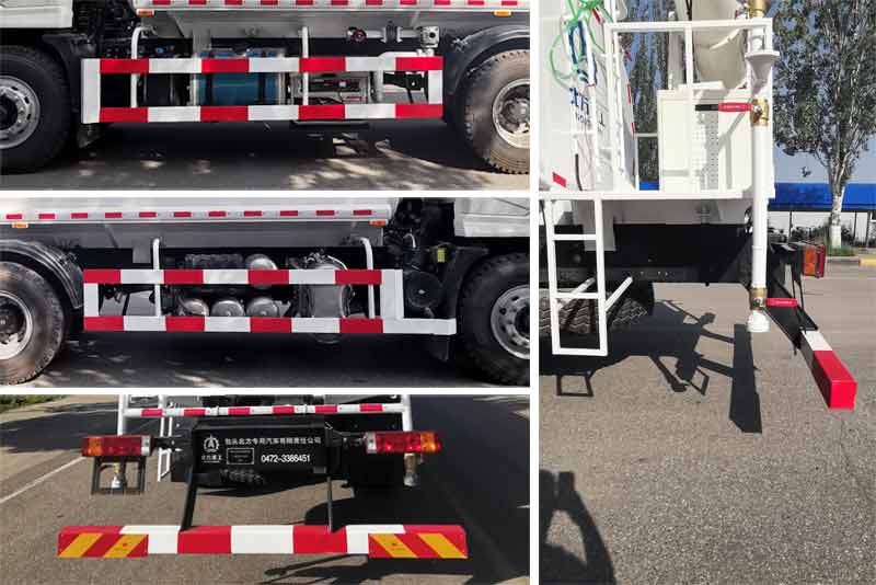 | 随底盘选装驾驶室前保险杠,前脸外观;选装轮罩外观和脚踏板外观,选装低位保险杠.选装驾驶室不带遮阳板.选装驾驶室两侧喷涂"X6"字样及图案.选装前部灯具,前围,前保险杠,侧围.选装不安装雾炮;选装左右水管管路布置,选装水路控制球阀,选装加装走台后部堵板;该车主要装置有罐体及水泵等,用于城市绿化浇灌,洒水等作业;运输介质:水,密度:1000千克/立方米,罐体有效容积13.9立方米,罐体外形尺寸为2250?360?500mm(长轴锥讨嶙长);侧防护使用材质为Q235A,采用螺栓连接固定于副梁支架上,后防护使用材质为Q345B,采用螺栓连接固定于车架纵梁上,后防护端面尺寸为120mm?00mm,离地高度475mm;安装带卫星定位功能的行驶记录仪;ABS系统生产厂家及型号:西安正昌电子股份有限公司/ZQFB-V。 |