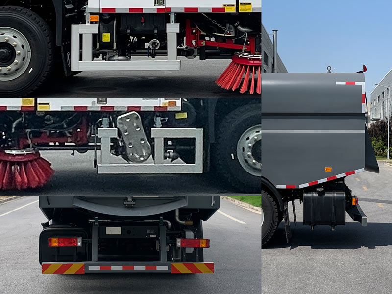 | 车辆用于道路清扫保洁作业,安装洗扫装置.选装1:不带前部连接支架及工作灯,车长8670mm,前悬1340mm,质量在误差以内忽略不计;选装2:仅在洗扫作业时,前部连接架安装洗扫滚刷;仅选用5100mm轴距;仅选用钢板弹簧悬架; 侧防护材质:铝合金,后防护材质:Q235A,连接方式都为螺栓连接;后防护截面宽赘?80?40mm,离地高度380mm; ABS型号/生产厂家:ZQFB-V/西安正昌电子股份有限公司;安装带卫星定位功能的行驶记录仪;该车型可选装ETC车载装置. |