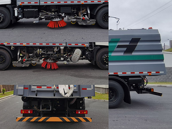 仅选用5000mm轴距。该车型可选装:1、后部作业指示灯;2、后上喷雾装置;3、后下喷雾装置;4、大流量后洒水装置;5、前洒水;以上5种选装配置引起的重量及整车尺寸变化可以忽略不计;专用装置代替侧防护;后防护装置的材料材质为:Q235A,连接方式为:螺栓连接;后防护装置的断面尺寸(宽赘?mm为:80?20,离地高430mm;随底盘选装前雾灯、扰流罩、卧铺玻璃侧窗、驾驶室顶部中间3个装饰灯为选装件;随底盘选装限速装置,限速89km/h;ABS型号/生产厂家:3631010-C2000/东科克诺尔商用车制动系统(十堰)有限公司,ABS 8/东科克诺尔商用车制动系统(十堰)有限公司, 4460046450/威伯科汽车控制系统(中国)有限公司,J ABS/焦作博瑞克控制技术有限公司。该车通过清扫机构,采用吸扫结合,湿式除尘的工作原理对路面进行清扫作业。 |