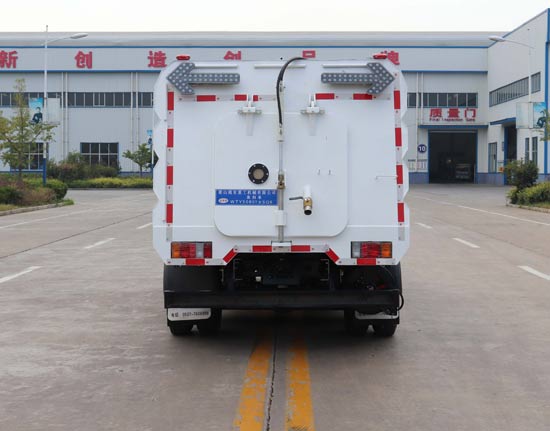 该车装备有垃圾箱,水箱,洗扫刷等专用装置,具有清扫和清洗功能;选装外观喷涂,选装外观样式,选装箱体外观样式;侧下防护装置由专用装置代替,后下部防护装置材料为:Q235B,后下部防护装置与车架连接方式为:螺栓连接,后防护装置尺寸为:截面140?0mm,离地高度410mm;油制动对应ABS及其控制器型号为:APG3550500A4,生产厂家为:浙江亚太机电股份有限公司,仅与4KH1CN6LB型发动机匹配;气制动对应ABS及其控制器型号为:CM4XL-4S/4M,生产厂家为:广州瑞立科密汽车电子股份有限公司. |