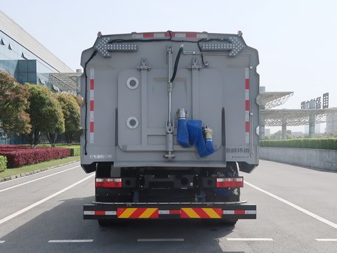 该车选用5000mm底盘轴距;该车装有箱体和清扫装置,对路面进行清扫作业;侧面防护装置材料为Q235A,连接方式为螺栓连接,后防护装置材料为Q235A,与车辆连接方式为螺栓连接;后部防护装置的断面尺寸为200?00mm,离地高度为400mm;该车可选装箱体顶盖,对应整车高3100mm,其余参数均为标配型;还可选装低压水前对冲,高压前角喷,后喷雾,后水带,选装箱体左、右侧门外观,油滤安装位置,铭牌位置,右侧液压管路外观,黑色吸嘴轮,后门外观,后门视窗外观,右前部箱体无侧门,该系列选装对整车参数的变化可忽略不计;随底盘选装驾驶室外观,随底盘装有ABS,ABS系统生产厂家,型号 :焦作博瑞克控制技术有限公司,J ABS;襄阳东风隆诚机械有限责任公司,ABS/ASR-24V-4S/4M. |