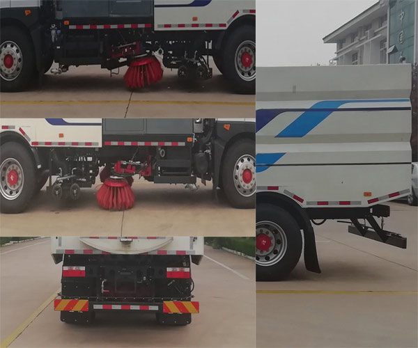 侧防护由专用装置代替,后下部防护装置材料为Q235A,连接方式为螺栓连接,截面尺寸为120?0,离地高度为430;安装带卫星定位功能的行驶记录仪,该车仅用B6.2NS6B210发动机;所有尺寸单位mm.ABS型号为JABS,生产厂家为:焦作博瑞克控制技术有限公司;专用装置:垃圾箱总成,吸嘴总成装置,具有清扫和清洗功能及垃圾收集功能,用于道路,路面的冲洗及垃圾收集作业.选装透气口朝向. |