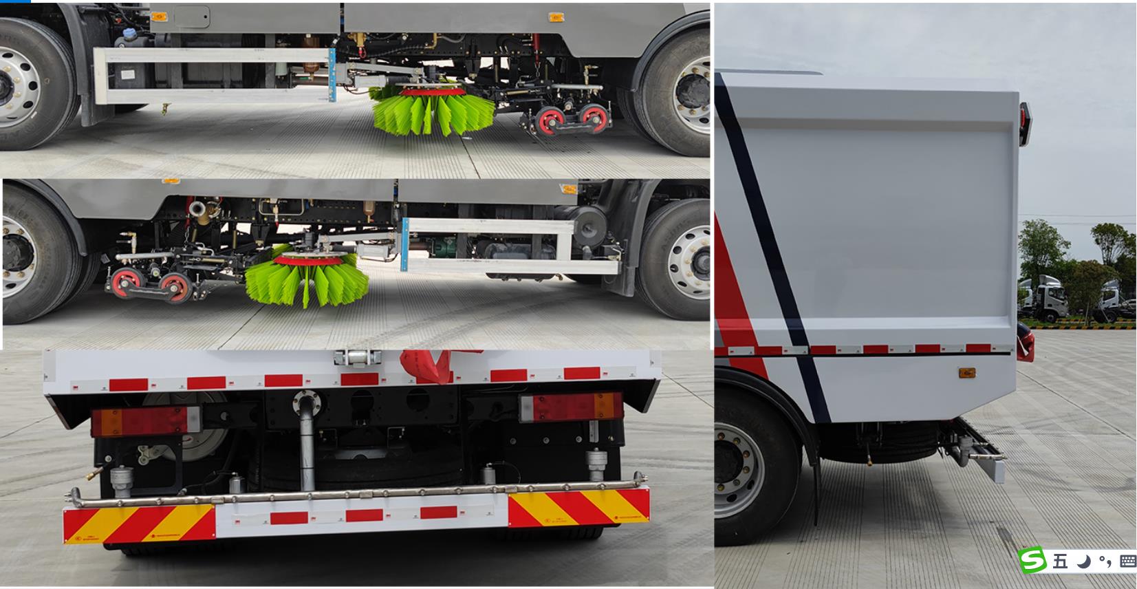 1、该车主要用于道路清扫,专用装置由箱体,高低压水泵,清扫装置总成等组成。2、选用5000mm和5300mm轴距底盘,轴距为5000mm外形长与前悬/后悬对应关系为(mm):对应关系:①8750/1400/2350;②8780/1430/2350;轴距为5300mm外形长与前悬/后悬对应关系为(mm):对应关系:①9050/1400/2350;②9080/1430/2350。侧防护材料为铝合金,螺栓连接;后防护材料为Q235,螺栓连接,截面尺寸140?0mm,下边缘离地高400mm。3、随底盘选装不同的驾驶室;选装前雾灯;选装驾驶室顶部装饰灯;选装驾驶室前面罩;选装前保险杠及前部灯具,选装驾驶室前脸扰流罩;选装驾驶室卧铺侧窗装饰板;选装踏步结构,选装后背式排气,选装高压定点清淤装置前伸300mm.4、ABS型号/生产厂家:3631010-C2000/东科克诺尔商用车制动系统(十堰)有限公司,ABS 8/东科克诺尔商用车制动系统(十堰)有限公司,4460046450/威伯科汽车控制系统(中国)有限公司,J ABS/焦作博瑞克控制技术有限公司。 |