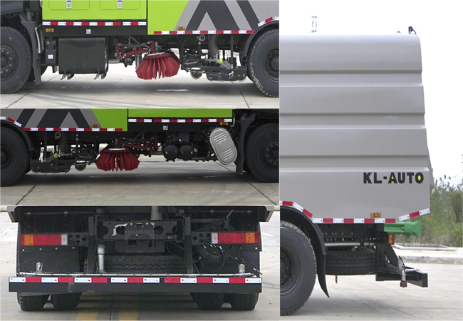1.该车专用装置由清扫装置,抽吸装置,垃圾箱及冲水系统等组合而成,主要用于路面洗扫作业;2.随底盘选装驾驶室;3.整车长/前悬/轴距/后悬对应关系为(mm):9600/1480/4350+1350/2420,9600/1500/4350+1350/2400,9850/1480/4600+1350/2420,9850/1500/4600+1350/2400,10050/1480/4800+1350/2420,10050/1500/4800+1350/2400,10600/1480/5350+1350/2420,10600/1500/5350+1350/2400;4.侧防护由专用装置扫刷代替,后下部防护与车架采用焊接连接,材质为Q235B,后部防护断面尺寸(mm):160?0,后部防护离地高度(mm):450;5.ABS型号/生产厂家:3631010-C2000/东科克诺尔商用车制动系统(十堰)有限公司,ABS 8/东科克诺尔商用车制动系统(十堰)有限公司,4460046450/威伯科汽车控制系统(中国)有限公司; 6.上装选装新型外观样式,随底盘选装限速装置,限速89km/h. |