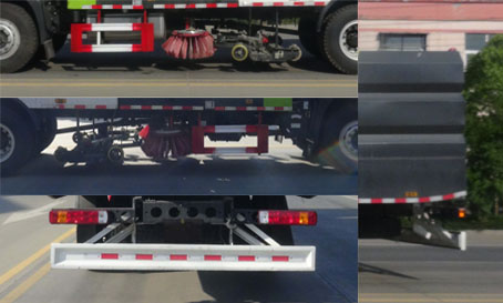 随底盘选装驾驶室。该车用于清除、收集路面垃圾等污物;专用装置为垃圾箱、水箱、扫刷.侧、后防护采用:Q235;焊接连接,后部防护断面尺寸(mm):200?0,后部防护离地高度(mm):450;ABS型号为CM4XL-4S/4M,生产厂家为广州瑞立科密汽车电子股份有限公司.随底盘选装前格栅及logo. |