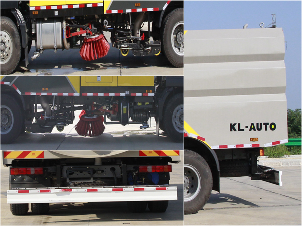该车专用装置由清扫装置,抽吸装置,垃圾箱及冲水系统等组合而成,主要用于路面洗扫作业随底盘选装驾驶室,选装后尾门样式,选装限速装置,限速89km/h;整车长/轴距/前悬/后悬对应关系为(mm):8650/5000/1450/2200,8350/4700/1450/2200,8150/4500/1450/2200 ,7850 /4200/1450/2200 ,7450 /3800/1450/2200,7250/3600/1450/2200;4.侧防护由专用装置扫刷代替,后下部防护与车架采用焊接连接,材质为Q235B,后部防护断面尺寸(mm):240?0,后部防护离地高度(mm):370;.ABS系统控制器生产企业/型号为威伯科(上海)管理有限公司/4460046300; |