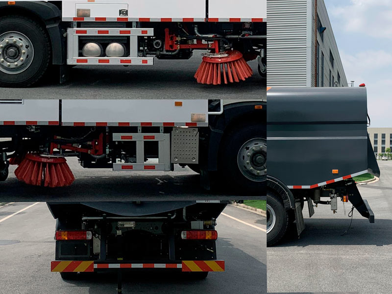| 该车用于道路清扫保洁作业,安装洗扫装置;选装1:不带前部连接架及工作灯,接近角为14?前悬1430mm,车长8850mm; 选装2:洗扫作业时前部安装洗扫滚刷,前伸量2270mm, 车长11330mm;仅用5200mm轴距;仅用钢板弹簧悬架;侧防护装置材质:铝合金,后防护装置材质:Q235A,连接方式都为螺栓连接;后防护截面尺寸80?40mm,离地高度:460mm;ABS系统控制器生产企业/型号为威伯科(上海)管理有限公司/4460046300;随底盘选装EBS,EBS系统控制器生产企业/型号为威伯科(上海)管理有限公司/EBS3;安装具有卫星定位功能的行驶记录仪;该车型可选装ETC车载装置. |