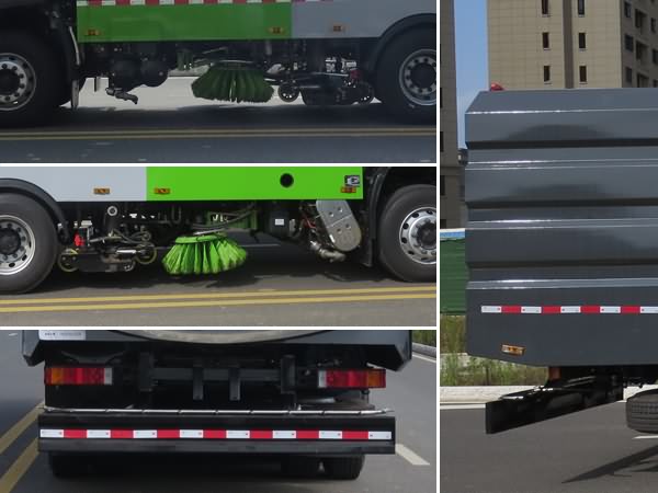 选装侧部专用装置安装位置,随底盘选装驾驶室,选装后部结构样式,随底盘选装仅颜色不同的后视镜,仅采用(mm)4350+1350,5350+1350轴距,整车长/前悬/轴距/后悬对应(mm)关系为:10200/1480/4350+1350/3020,10200/1500/4350+1350/3000,10800/1480/5350+1350/2620,10800/1500/5350+1350/2600;主要专用装置有箱体,柴油机组,清扫装置等,用途路面清扫,收集垃圾;ABS型号/生产厂家:3631010-C2000/东科克诺尔商用车制动系统(十堰)有限公司,ABS 8/东科克诺尔商用车制动系统(十堰)有限公司,4460046450/威伯科汽车控制系统(中国)有限公司.侧面防护装置由专用装置代替.后下部防护装置采用Q235材质,连接方式为螺栓连接;后下部防护装置断面尺寸(宽赘?(mm):50?40,离地高度:430mm。 |
