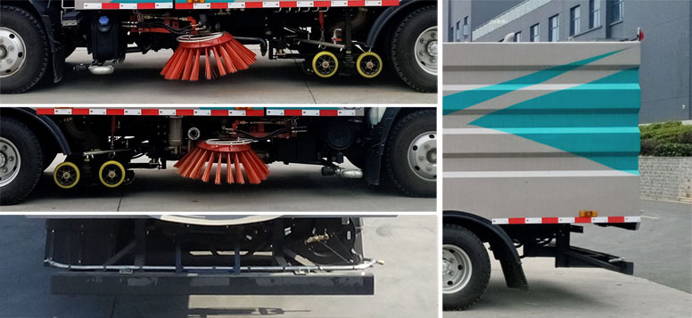 该为道路洗扫专用车辆,专用装置为扫刷;侧面防护为专用装置扫刷代替,后下部防护与车架采用螺栓连接,防护材料:Q235A碳钢,后下部防护尺寸:60?20(mm),离地面高度310mm.该底盘选装制动系统,油制动对应ABS及其控制器型号为:APG3550500A,生产厂家为:浙江亚太机电股份有限公司,仅与4KH1CN6LB型发动机匹配;气制动对应ABS及其控制器型号为:CM4XL-4S/4M,生产厂家为:广州瑞立科密汽车电子股份有限公司;选装不同造型外观图片; 随底盘选装驾驶室. |