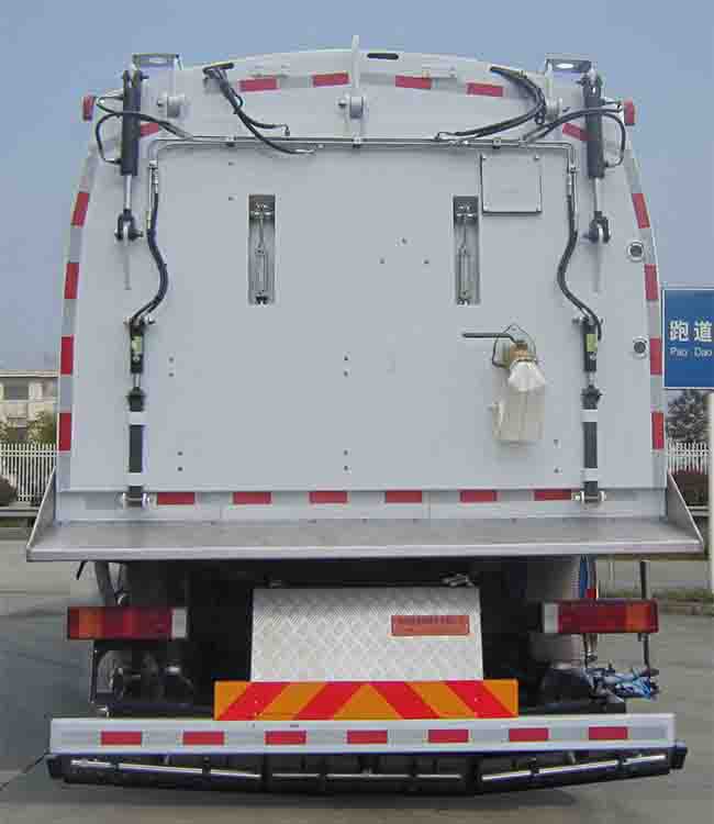 | 具有清扫机组工作装置及洗扫功能.仅选用5000mm轴距.选装后游动吸口.随底盘选装高度不同的驾驶室,驾驶室顶部装饰灯,前雾灯,驾驶室前面罩,前保险杠及前部灯具,后视镜,驾驶室前脸扰流罩;侧防为专用作业装置;后防护装置采用120?0?的空心型钢(Q235A)与厚为8mm的钢板(Q345B)支架焊接而成,再用螺栓固定在大梁两侧,离地高度为460mm.选装情况:整备质量kg-驾驶室准乘人数--额定载质量kg对应关系:14100--3--3705,14100--2--3770;选装两段式液位计、爬梯、后轴整体式挡泥板.安装具有卫星定位功能的行驶记录仪.安装ABS,ABS型号/生产厂家:3631010-C2000/东科克诺尔商用车制动系统(十堰)有限公司,ABS 8/东科克诺尔商用车制动系统(十堰)有限公司, 4460046450/威伯科汽车控制系统(中国)有限公司. |