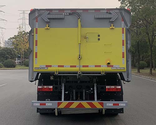 ABS型号:J ABS,ABS/ASR-24V-4S/4M;ABS生产企业:焦作博瑞克控制技术有限公司,襄阳东风隆诚机械有限责任公司;选装限速装置;限速装置限速(km/h):89;选装描述:仅选用5000mm、4500mm轴距;随底盘选装高顶驾驶室,踏板反射器,铝合金油箱;侧后防护情况:侧防护装置为专用作业装置替代.选装侧防护材料为Q235B和铝合金,连接方式为螺栓连接,后防护为材质为Q345B,连接方式为螺栓连接,截面尺寸为180mm?0mm,离地高度为470mm;专用功能及装置:该车专用装置为路面清扫装置,用于道路清扫.该车选装后部管线布局,整车外观. |
