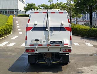 仅选用2650mm轴距,可选装另一种空滤帽位置、护轮板标识、新外观,随底盘选装驾驶室前围装饰标贴;该车通过清扫装置、抽吸装置等专用装置实现清扫作业;ABS控制器型号/生产厂家:YF8/武汉元丰汽车电控系统有限公司。 |
